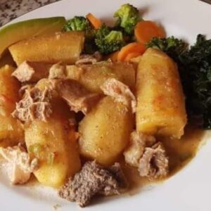 Matooke, Irish potatoes, Chicken, Avocado, Greens